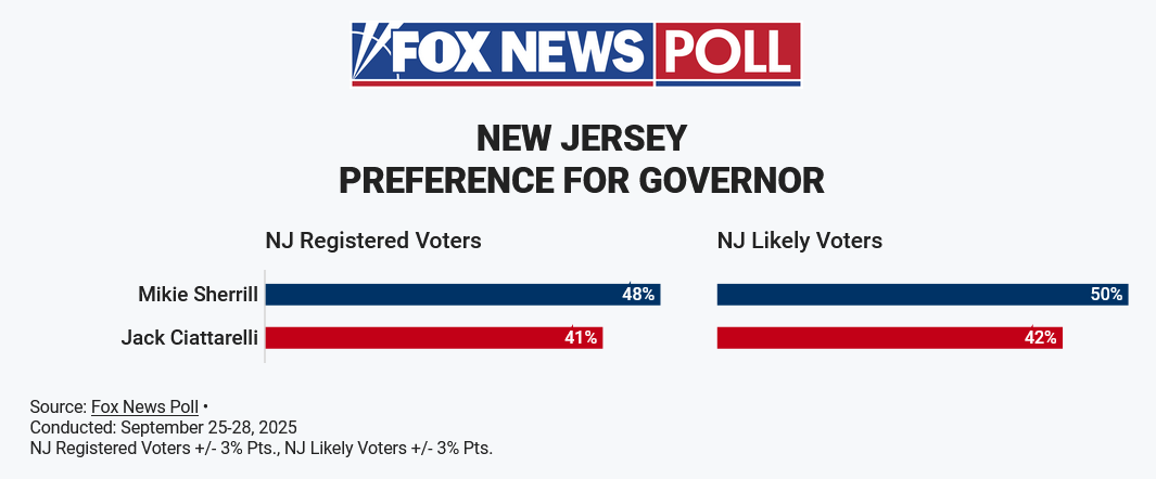 Mikie Sherrill Has A Sturdy Lead In New Jersey - Here is a sample of recent non-right wing polling in New Jersey (Sherrill-Ciatterelli)