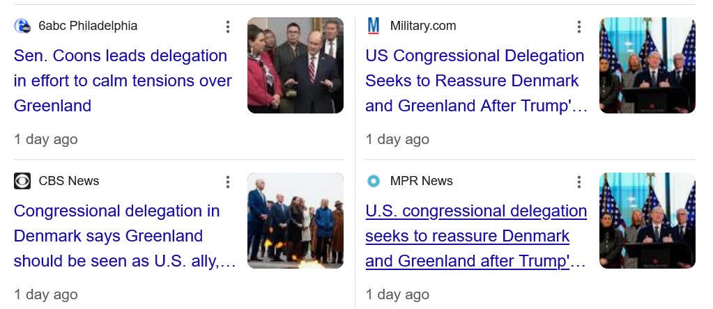As we discussed the other day Trump has started 2026 with dramatic and unhinged escalations - the attack on Minnesota, the seizing of Maduro, the crowning of himself Emperor of the Americas, what is now something close to war with Europe and the end of the global security architecture that has keep us safe and prosperous for 80 years, the claiming of Gaza for himself and his friends, a doubling down on his illegal, reckless tariffs.