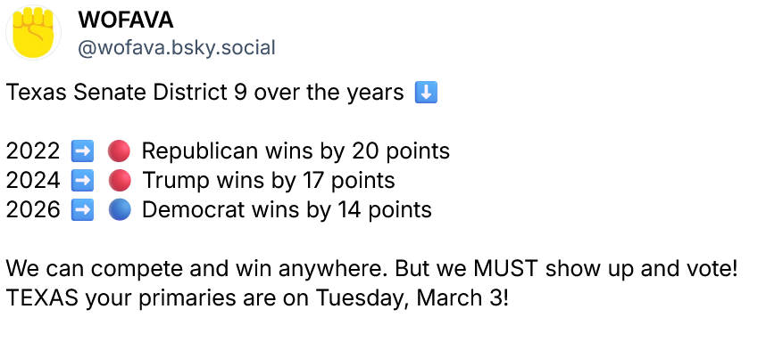 Fired up about our big win in Texas last night? Contribute to our Audacious Expansion Fund which has already poured $70,000 into the Texas Democratic Party to help fuel this victory; fund the Texas Dems directly; watch my recent discussion with Kendall Scudder, the dynamic new Chair of the Texas Democratic Party discussing their ambitious 2026 plans.