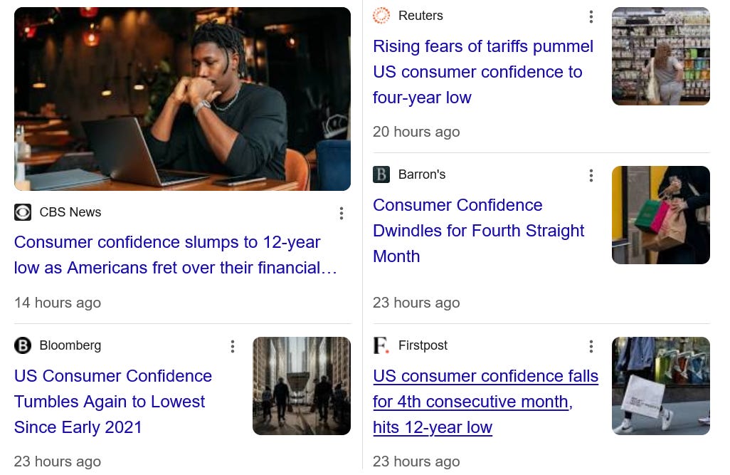 4 - Another influential consumer confidence survey released yesterday shows how much Trump’s economic policies have weakened him with the public: