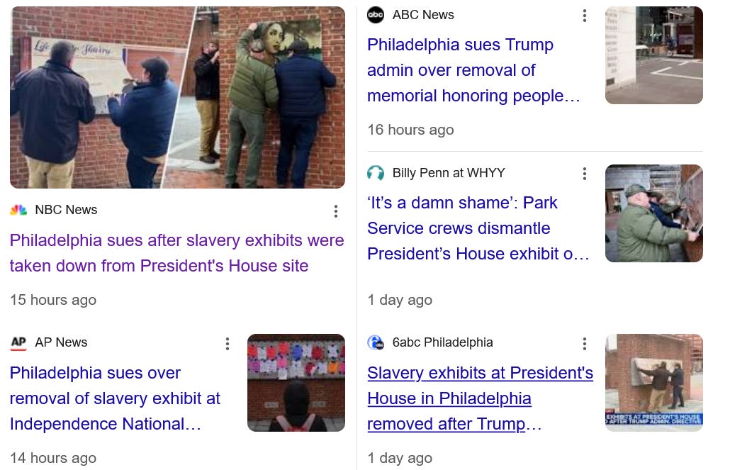 “Removing the exhibits is an effort to whitewash American history,” Philadelphia City Council President Kenyatta Johnson said in a statement Thursday. “History cannot be erased simply because it is uncomfortable. Removing items from the President’s House merely changes the landscape, not the historical record.”