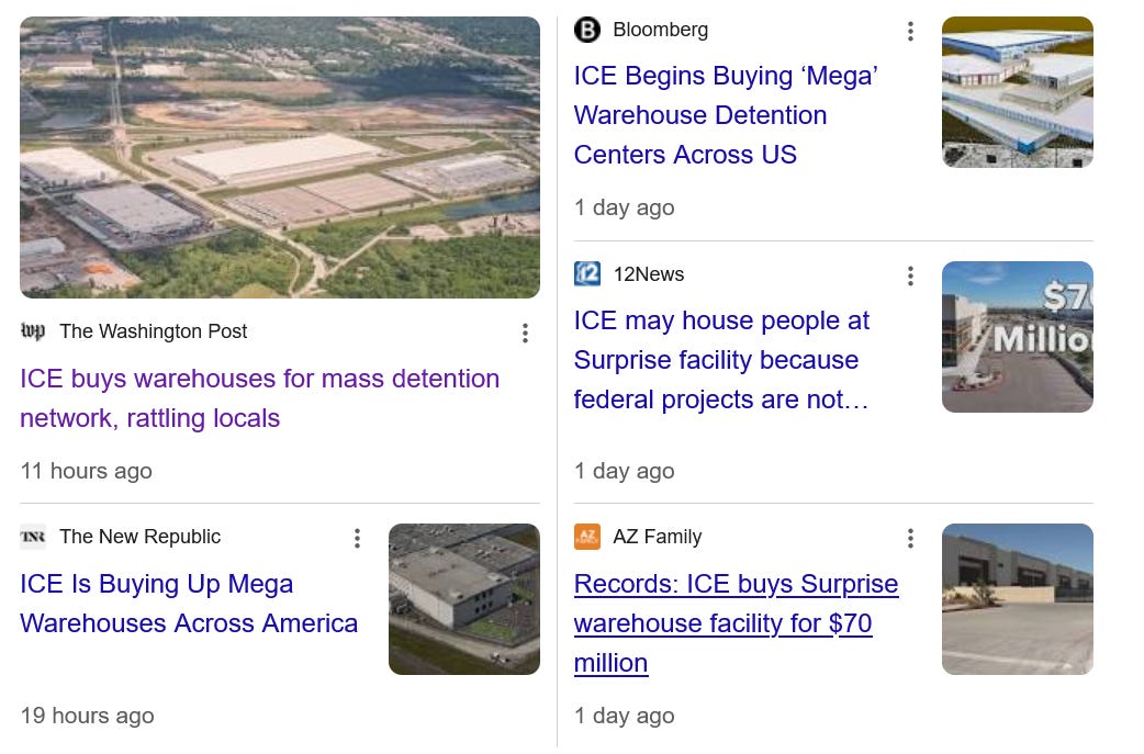Yesterday we learned that ICE has already begun spending that enhanced detention money and is buying warehouse - yes warehouse - space across the US: