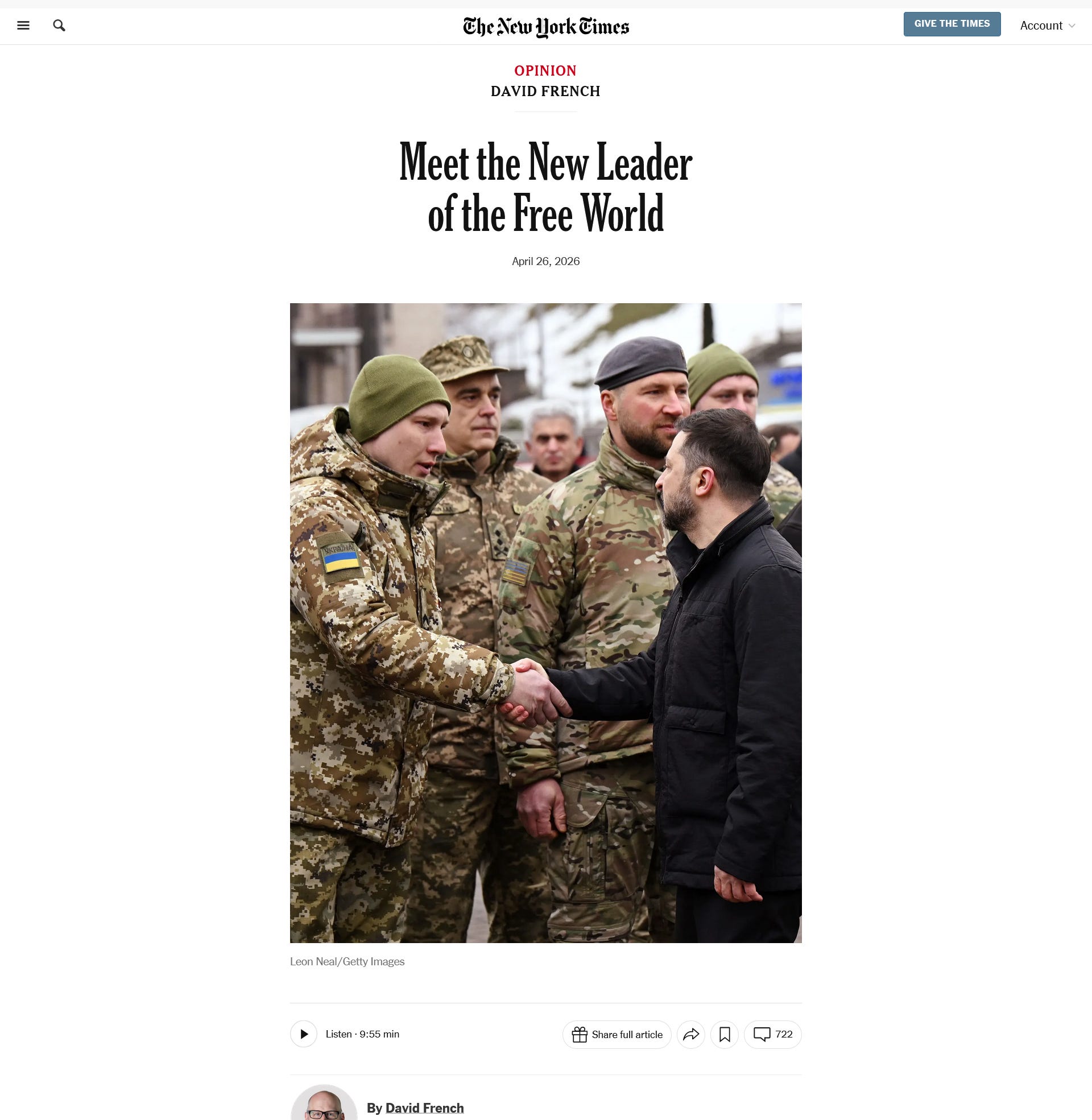 And agree with David French’s argument here that Zelenskyy has replaced the American President as the leader of the free world: