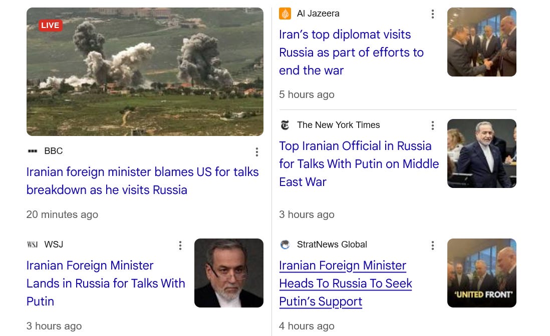 Meanwhile an emboldened Iran has sent its Foreign Minister to Moscow today, shoring up the Iranian-Russian alliance, an alliance that is currently fighting against Europe and Ukraine in Ukraine, and against the US in the Middle East: