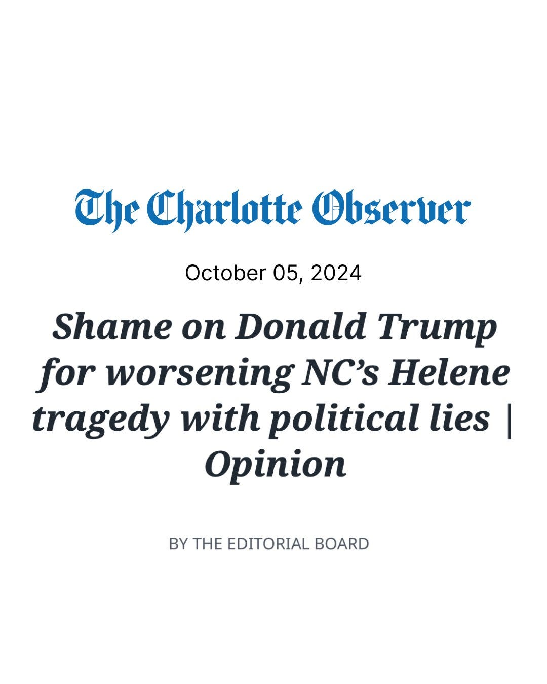The Biden-Harris Administration is busting their ass to help the communities impacted by Helene. The other side is doing everything they can to make that harder. Here is how one of the most influential news organizations in North Carolina addressed the rapist, fraudster, traitor, 34 times felon and vile proprogandist: