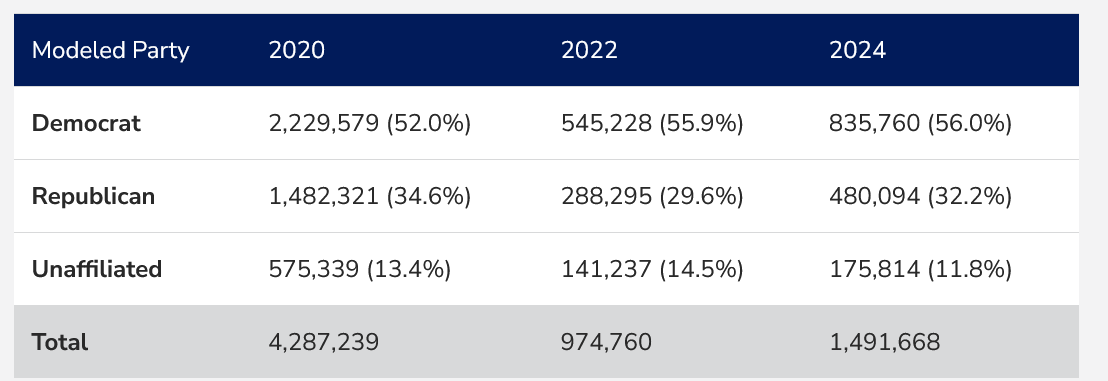 Here’s the latest national early vote tally via TargetEarly. Learn more about how I am going to use this data in the coming days here. So far, so good, people.