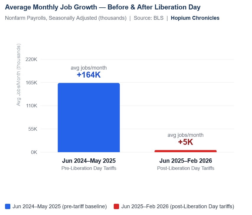 Here’s a comparison of average month job growth before and the tariffs: