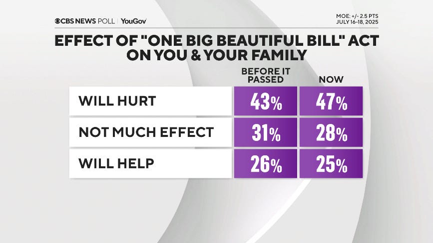 When Congress returns in September not only will they be grappling with the Epstein affair, they will have to pass a fiscal year 2026 budget. Without a new budget the government runs out of money on October 1st. This dysfunctional, shambolic, cowardly, shitshow of a Congress will have to somehow come together keep the government from shutting down and pass a budget that funds the government for the next year. And that, my friends, is going to be a serious problem for them. For that budget will not only have all the deeply unpopular parts of the big ugly it will include exploding deficits, onerous tariffs, cuts to NIH, FEMA, Department of Education, etc too. It is going to be the BIG, BIG UGLY, and we should be able to use these months of wrangling and struggle to hang their agenda of sabotage, plunder and betrayal around their necks and further degrade their already degraded standing; and perhaps, perhaps, if all goes well, knock out or delay some of the worst parts of what is to come.
