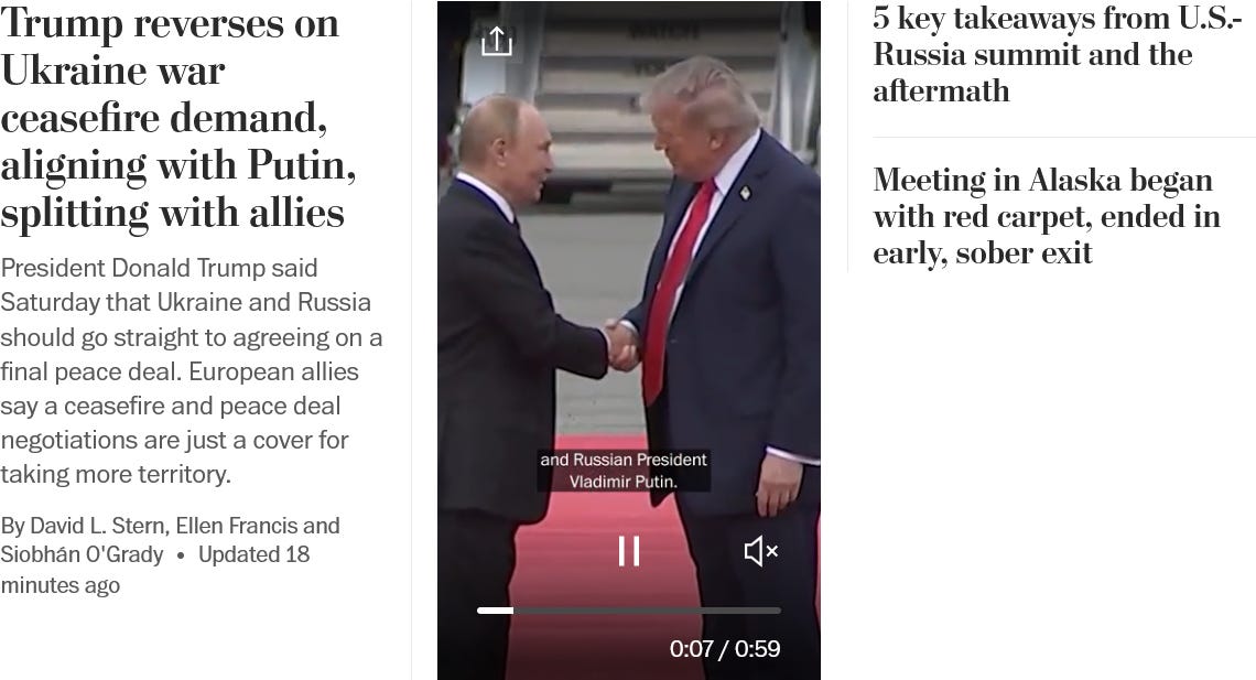 Here’s the NYT this morning, “Trump Backs Putin’s Route for Talks” (gift link):