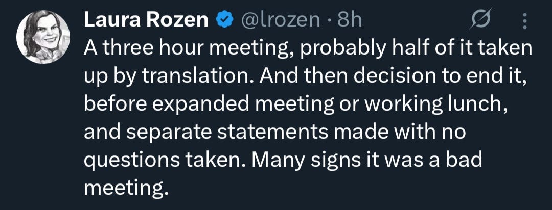 What struck me was the looks on the faces of a lot of the American, delegation here. Caroline Leavitt, Steve Witkoff, who came into the room, then left quickly. Leavitt appeared to be a bit stressed out, anxious. Their eyes were wide, almost ashen at times