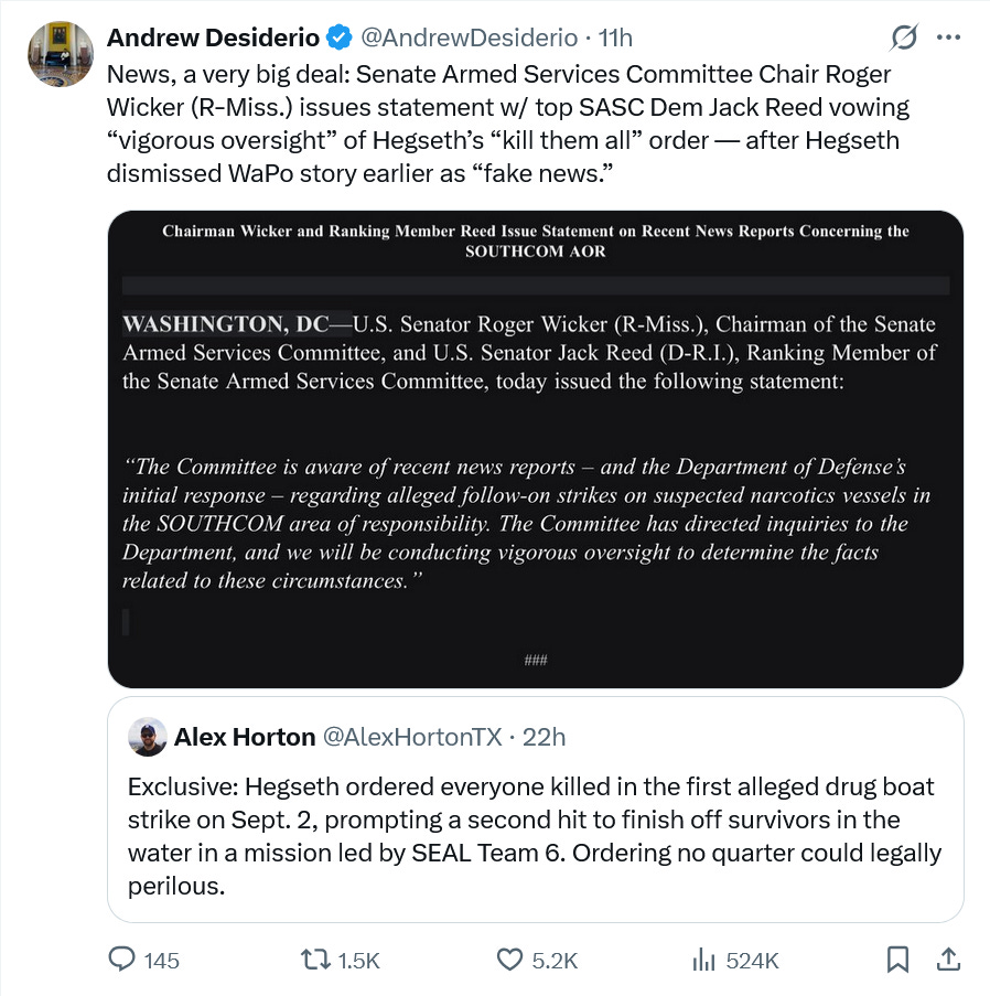 4 - We got confirmation of high level crimes by Hegseth and Noem this week: