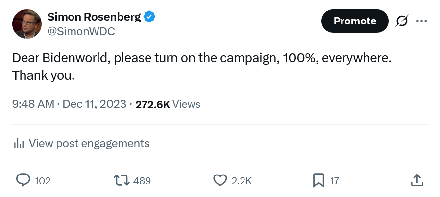 I am making the same recommendation now, today, December 9, 2025, to our family. The 2026 general election begins today, and we need to being moving to a general election tempo and footing now, not in the summer and fall of 2026. It’s why we put so much emphasis here at Hopium on early money, particularly with the battleground state parties. We started our campaign too late in 2024 and it cost us. We cannot make the same mistake this time. Politics doesn’t have seasons. It’s always on, 24/7/365, and we need to get going now. The 2026 general election begins today and we need to stay very, very focused on the mission - beating Trump and MAGA, and not fighting with one another.