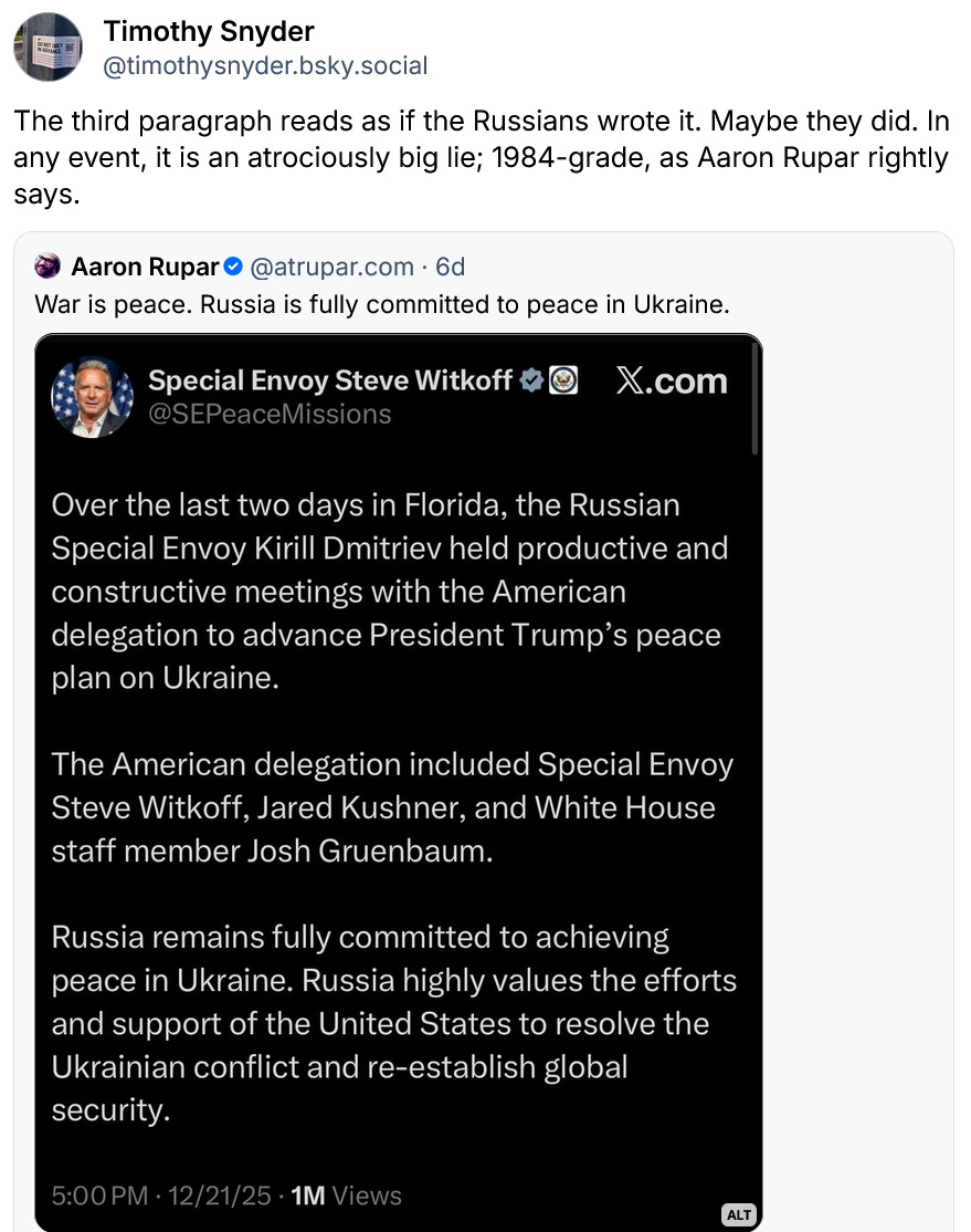 Trump and Zelensky had a press conference where both sides committed to keep working. Throughout the run up and the event today Trump and his team continued to repeat outlandish Russian talking points….