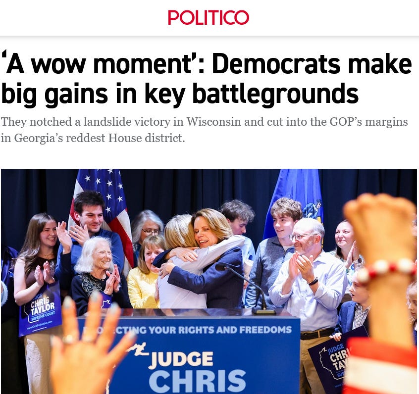 As we’ve been discussing here I think Thune, and to some degree Mike Johnson, are aware of the gravity of the problem they now face. They defied Trump on DHS/ICE and SAVE; Thune launched a massive $342 million Hail Mary to save their Senate majority; Democrats had more huge, terrifying overperformances in Georgia and Wisconsin last night and even Republican polling is now showing just how much their battlefield has eroded for them in recent weeks.