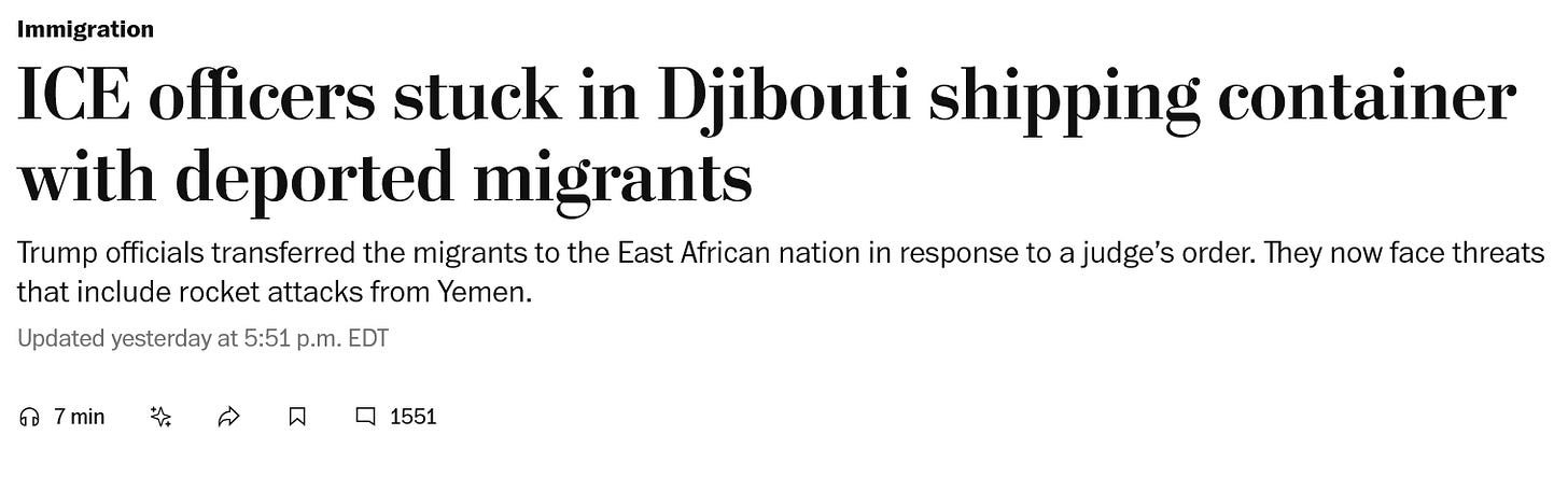 This important, timely and compelling discussion with my good friend Joe Garcia brings together many of the threads we’ve been discussing here in recent weeks about the breathtaking inhumanity and fanaticism of the hate-filled “more for me, less for you” and “we are all going to die” Trump regime. Vaporizing USAID is causing millions of the poorest people in the world to die around the world. Cutting Medicare, Medicaid, the ACA and weakening our public health system will cause many to suffer and die here in the US. Trump’s tariffs have raised taxes and prices on all poor, working and middle class Americans - illegally, unconstitutionally, fanatically. Trump continues to whitewash Putin’s Ukrainian genocide and daily wanton killing of civilians. Trump is championing the forced removal of all 2m Palestinians from Gaza to a third country against their will. This week the Administration revoked the Biden rule that pregnant women must be allowed emergency abortions if their lives were threatened. One million people - not migrants, not immigrants, not aliens, not illegals - one million people are now stateless in South Florida with no way to feed their families and no where to go. Over 200 men have been shipped to a foreign gulag without due process or even the ability of families to contact them. Others are at an airport in South Sudan and others are sitting in a container crate in Djibouti: