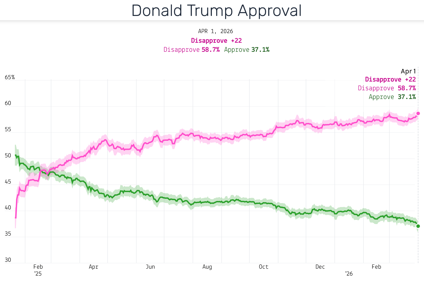 Trump has dropped 3 points in just the last few days in the FiftyPlusOne poll average, and now sits at the lowest level of his second term: