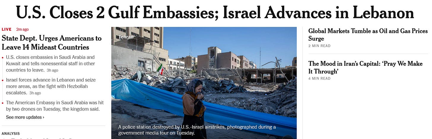 The US is now telling hundreds of thousands of Americans to leave a region where all the airports are closed. Embassies are being attacked and shuttered. Gulf Arab oil infrastructure is being destroyed. In a huge embarrassment for Trump regional leaders are now calling Zelenskyy and Ukraine for help in fighting the Russian-Iranian Shahed drones.