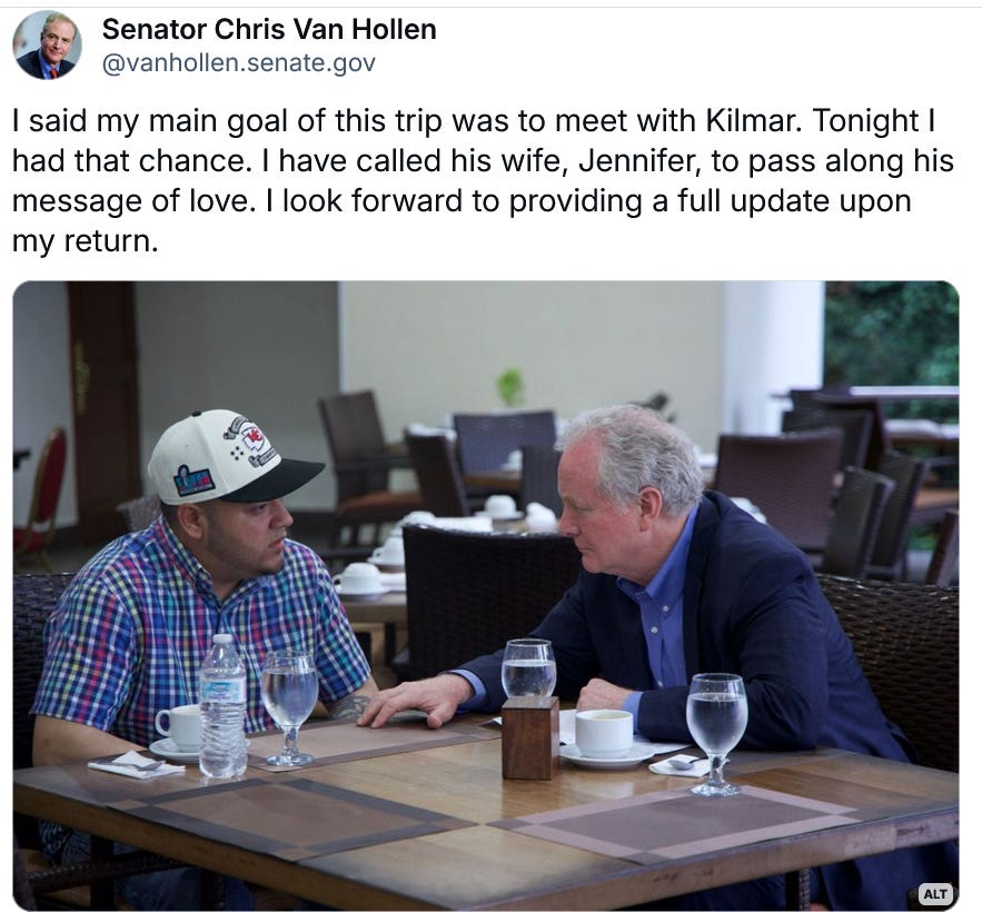 Yesterday Senator Chris Van Hollen met with Kilmar Abrego Garcia. Despite a 9-0 Supreme Court order instructing Trump to facilitate his release Abrego Garcia remains in El Salvador. The fight continues. Keep contacting your Congressional offices and demand they keep working to have all legal residents of the US wrongly sent to our new Salvadoran gulag released.