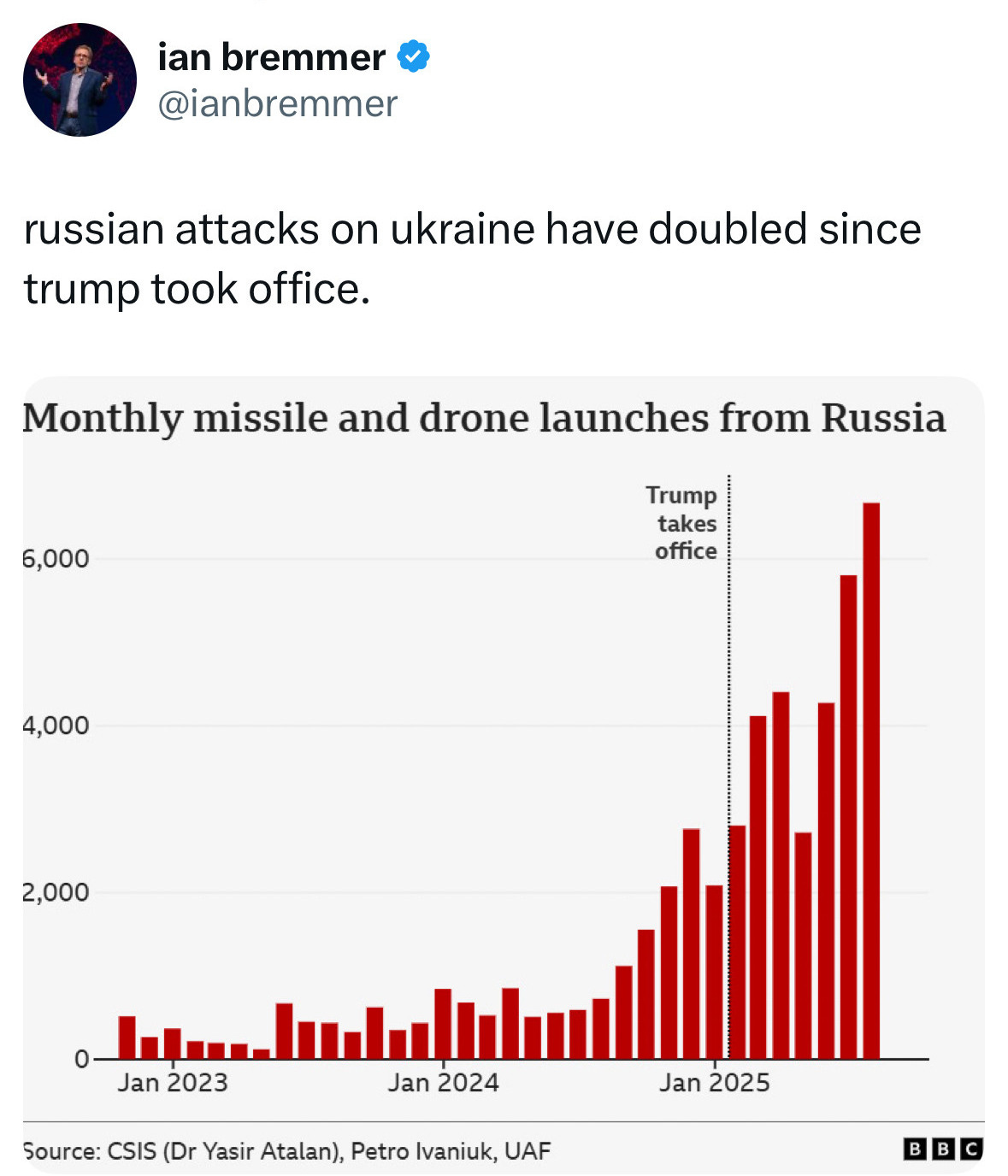 That Trump is now running to meet with Putin early next week within days of doing more direct damage to the “US-led liberal democratic order” through these historic and destructive tariffs than Putin had ever done himself should also be motivating us to action. It is as if Trump is now reporting in to Putin, like a good dog, letting him know that he got one big part of their agenda through - the undermining of the US-led liberal democratic order - and now Trump needs him to play ball on Ukraine or whatever the fuck it is they are going to talk about.
