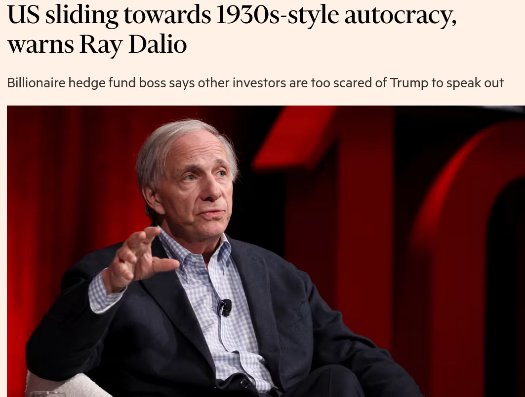 One of the most respected investors in America, Ray Dalio, is in the Financial Times this morning warning of our descent in fascism and chaos: