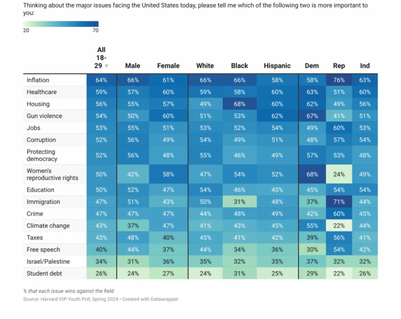 As I showed you last week, there is not broad support for these protests in America or on American college campuses. Most young people are far more concerned with making a living, their health after a pandemic, loss of reproductive freedom and our democracy, climate change, gun safety and a host of other issues. And this makes sense, for the average young person these things do matter much more to them.